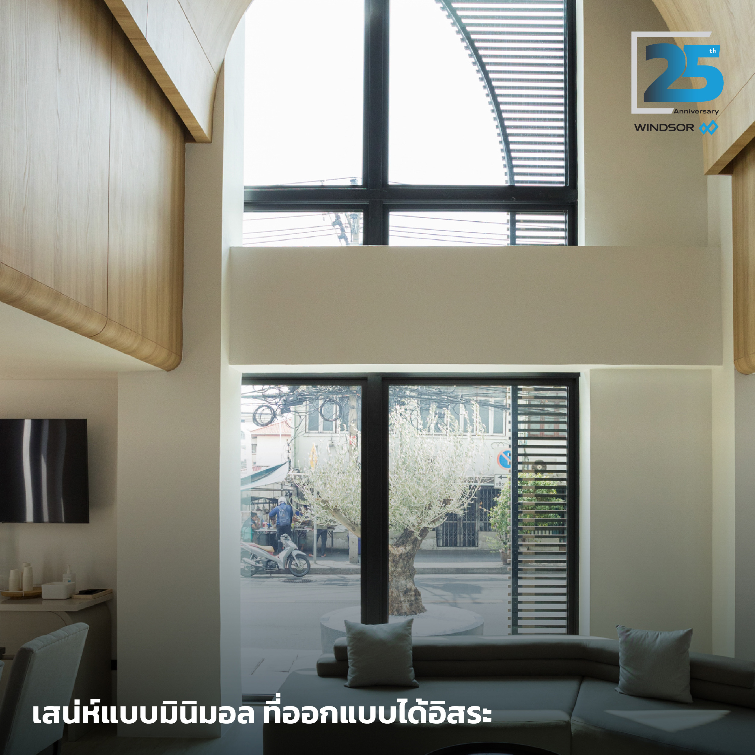 ภายใต้งานสถาปัตยกรรมโมเดิร์น กรอบบานประตูหน้าต่างสีดำ (Brilliant Black) ของวินด์เซอร์ก็เป็นองค์ประกอบที่ช่วยเติมเต็มความทันสมัยให้งานออกแบบสมบูรณ์ยิ่งขึ้น พร้อมมอบความทนทานต่อทุกสภาพอากาศด้วยวัสดุหลักอย่าง WINDSOR Advance Vinyl จึงสร้างความปลอดภัยให้กับโรงแรมย่านกลางเมืองได้อย่างยาวนาน